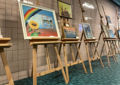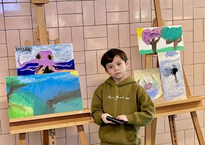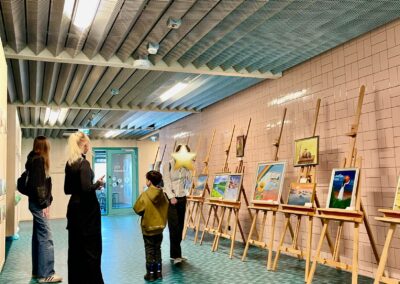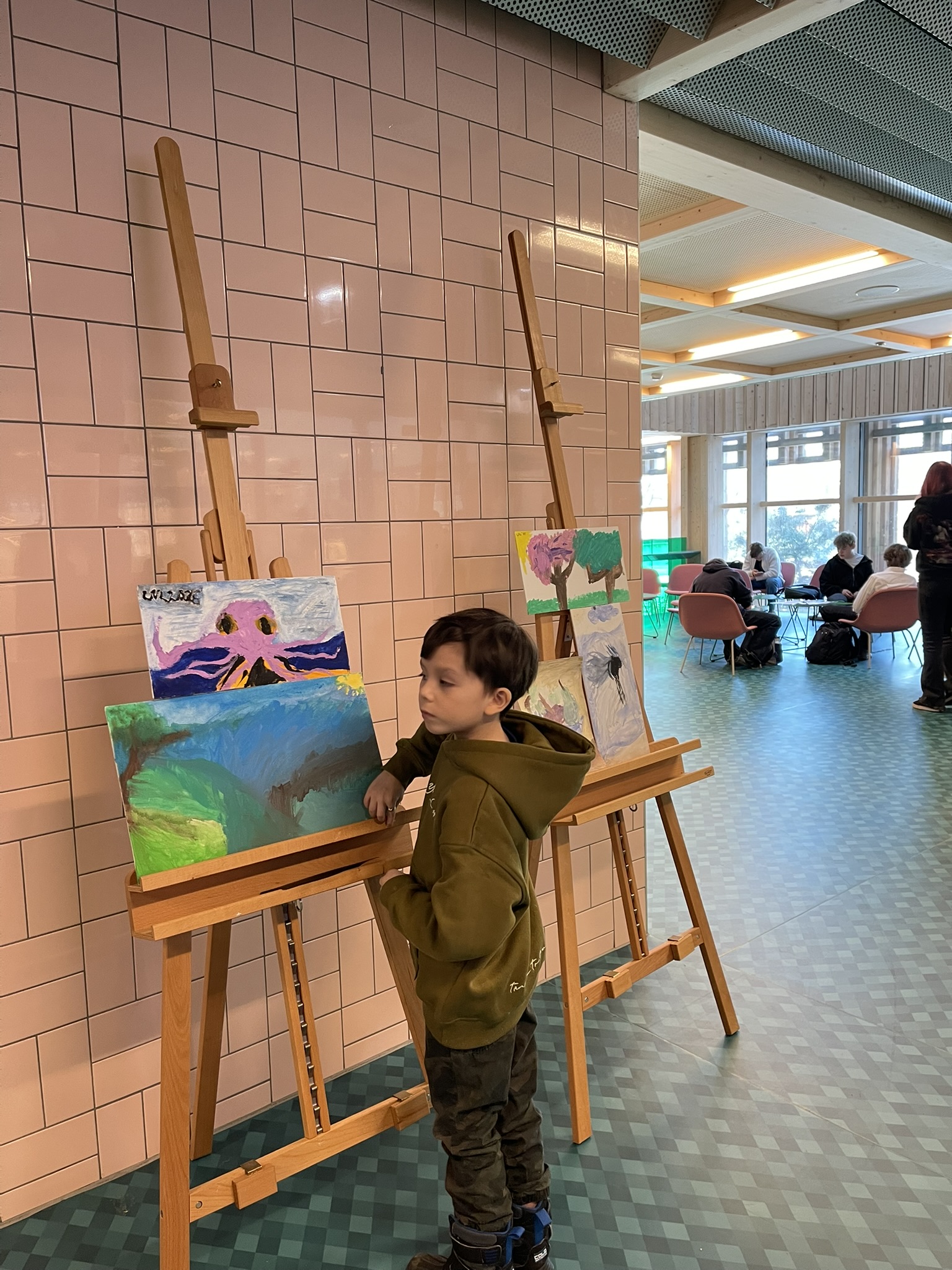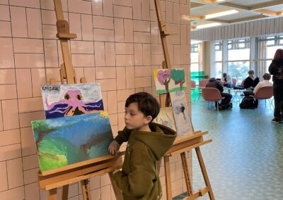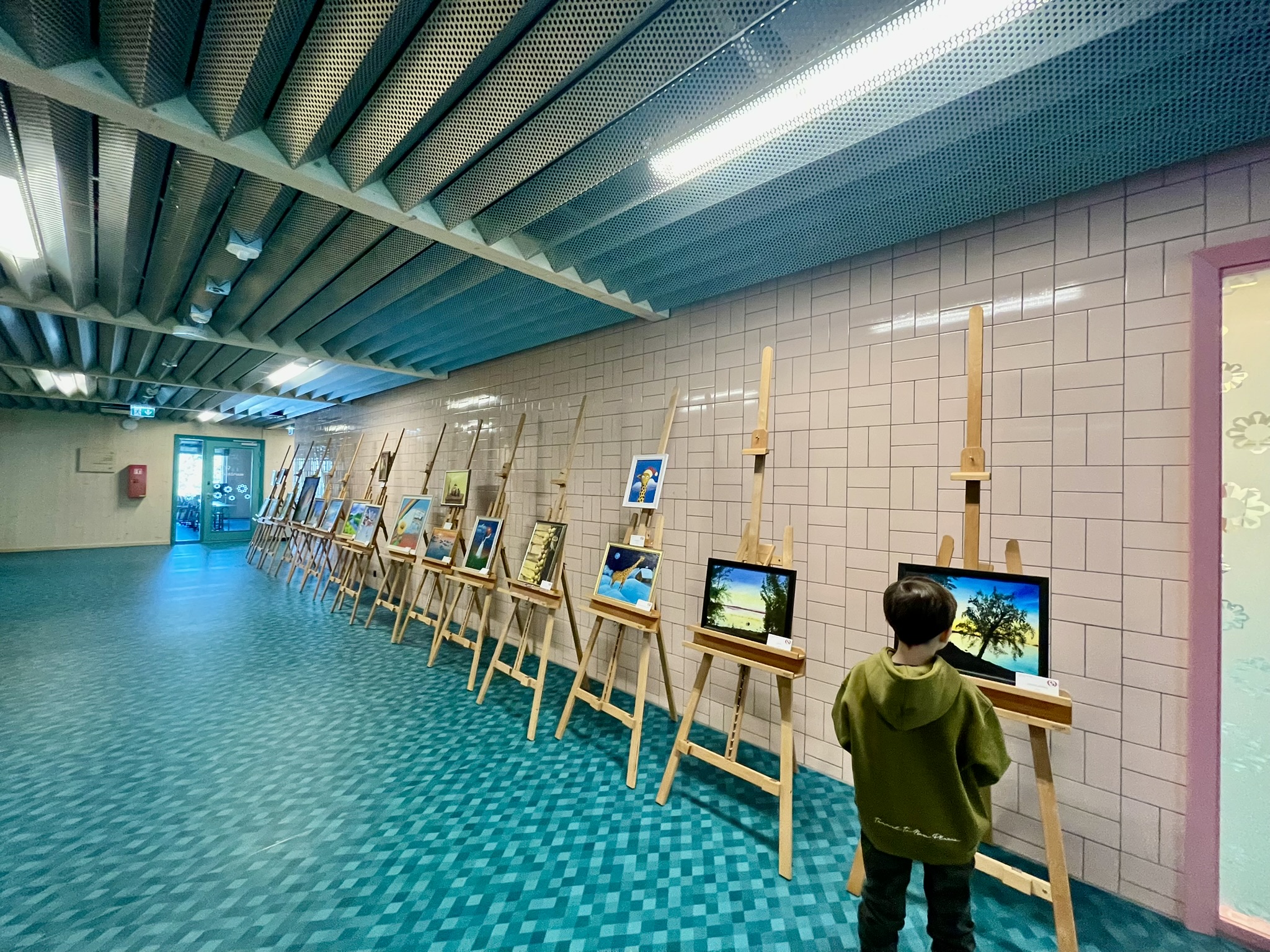 Maailmahariduspäevak toimus 17. veebruaril ning seekord otsustasin näitusele välja panna 20 teost. Mul oli rõõm lisaks enda teostele eksponeerida ka mõned Lucas Nikolase maalid. Lucas on noor ja andekas kunstnik, kes tahab oma isast paremaks kunstnikuks saada.