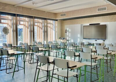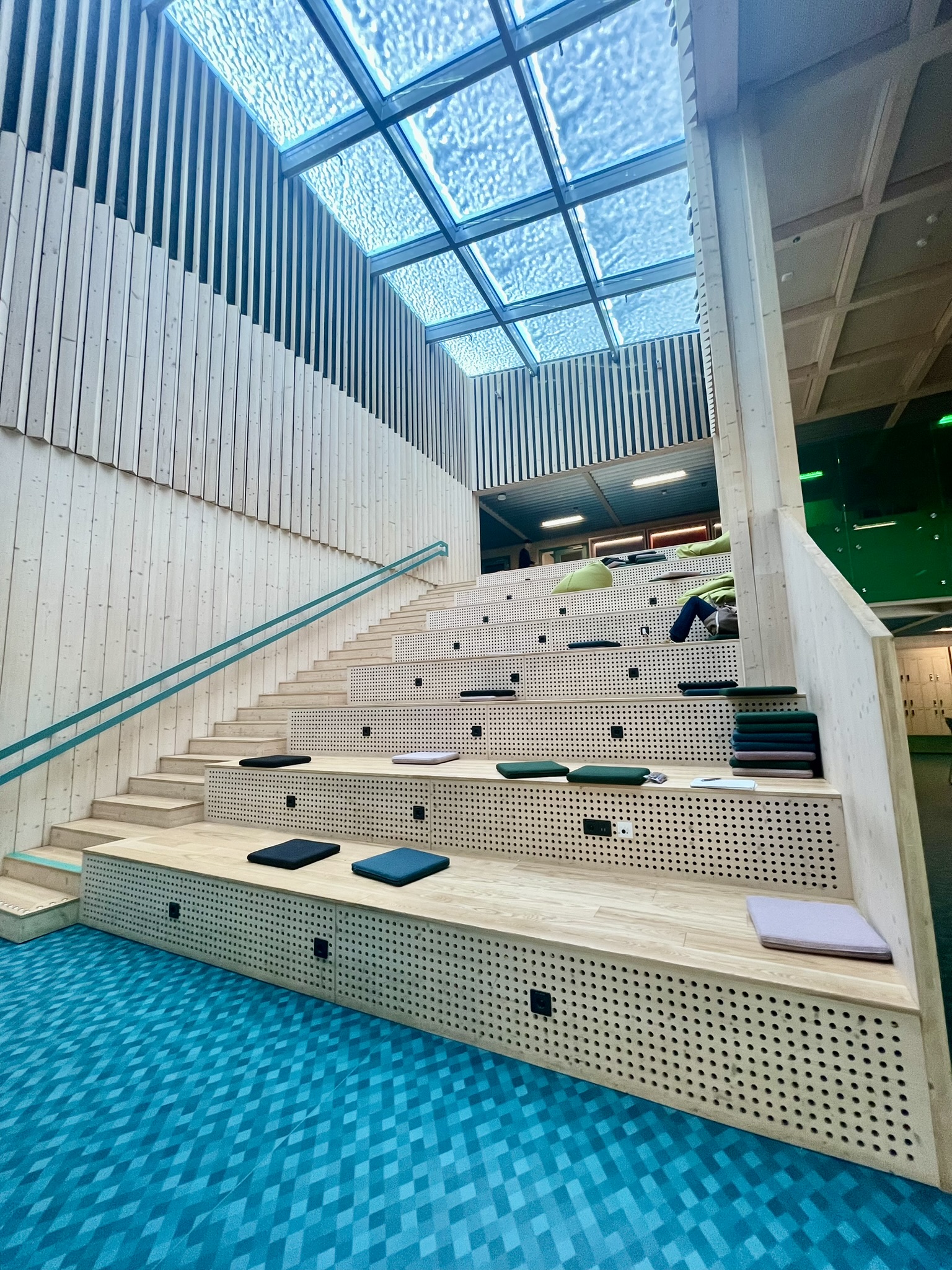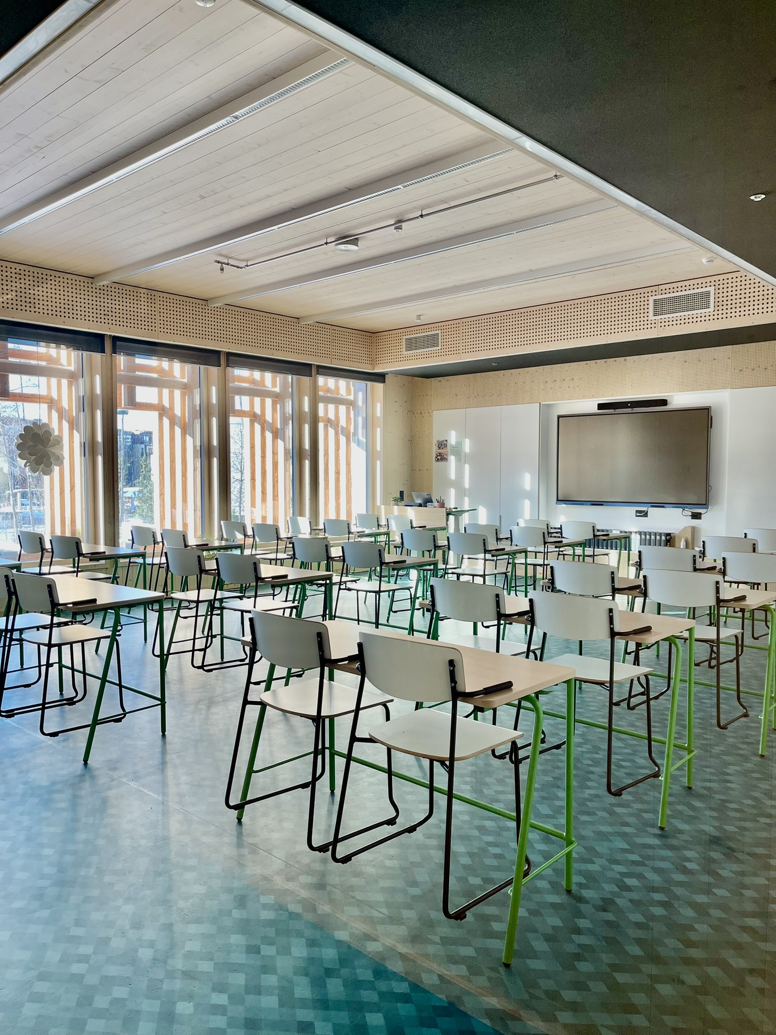Kool korraldas meie perele ka väikese ringkäigu. Oli hämmastav näha, kui uhkes puitehitises kool asetseb – sisustus on maitsekalt kujundatud ja väga korralik.